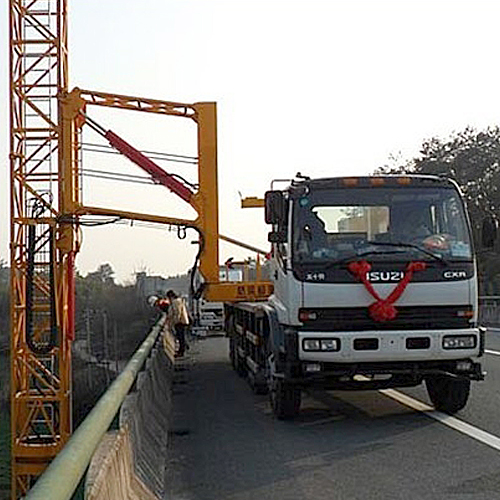 橋梁檢測車廣泛適用於大中型橋梁的病害維修和預防性檢查作業,如對大橋下麵各結構進行全麵的檢查、維修與維護(油漆、噴砂、安裝、拆卸),包括對大橋主梁梁底裂紋檢測和全橋支座檢查養護,也可以安裝和維護橋下管道和電纜。