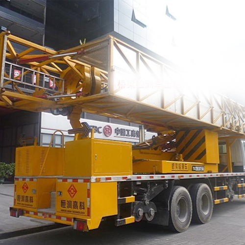 橋梁檢測車廣泛適用於大中型橋梁的病害維修和預防性檢查作業,如對大橋下麵各結構進行全麵的檢查、維修與維護(油漆、噴砂、安裝、拆卸),包括對大橋主梁梁底裂紋檢測和全橋支座檢查養護,也可以安裝和維護橋下管道和電纜。